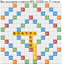 - Выложенное слово может создавать дополнительные слова с уже размещенными буквами